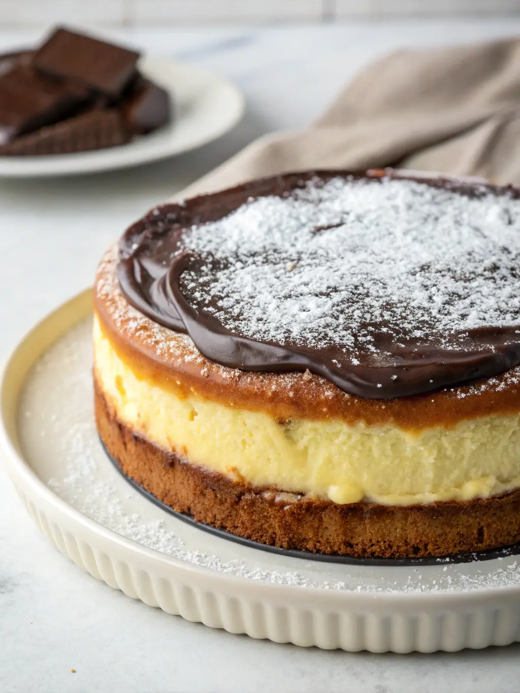 The Boston Cream Pie started in the 19th century in Boston, Massachusetts. It was originally a cake with custard and chocolate glaze. Over time, it inspired the Boston Cream Pie Cheesecake, keeping the classic tastes in a new form.